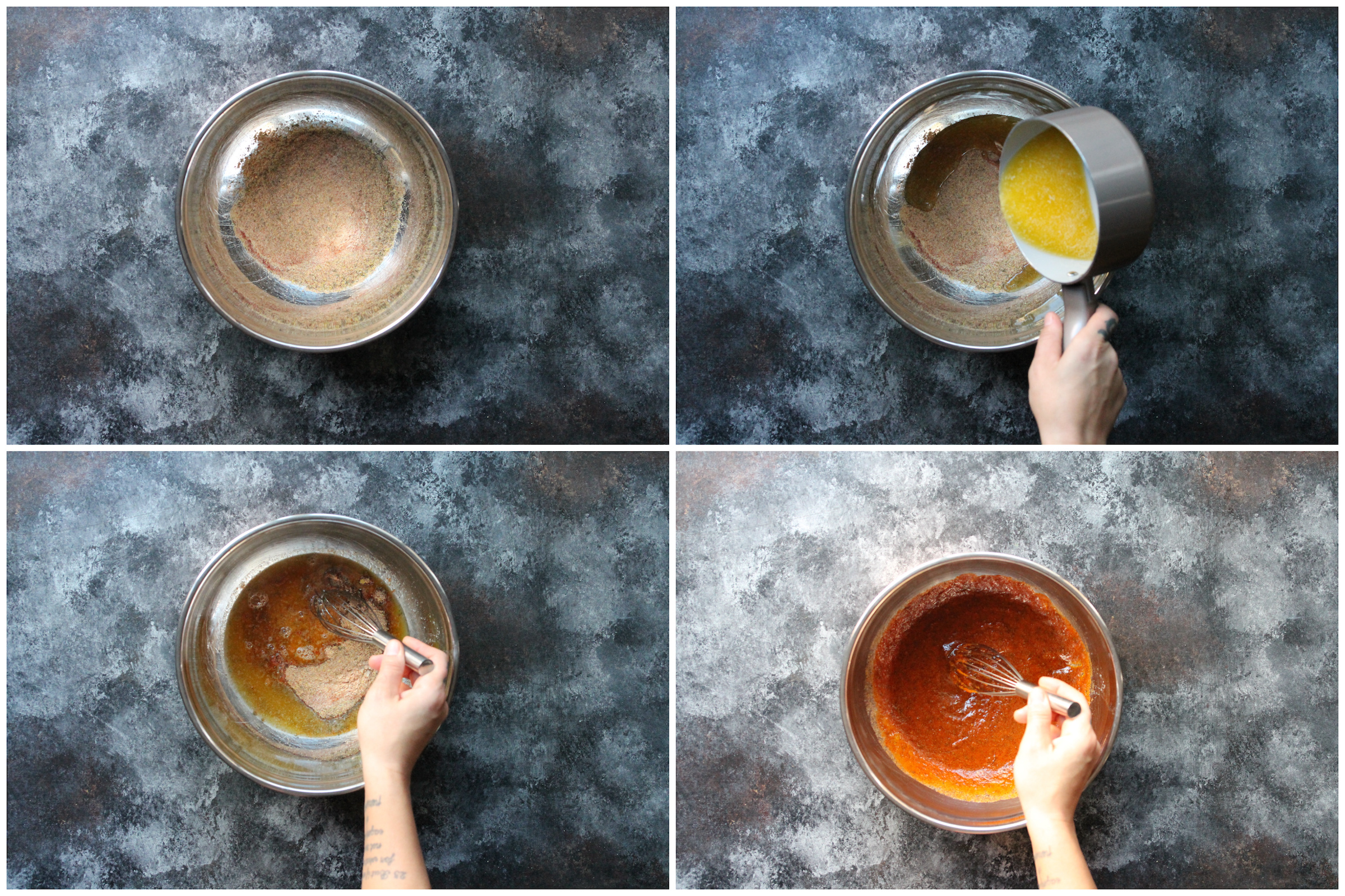 - Place the melted butter and seasonings in a large bowl and whisk until combined.