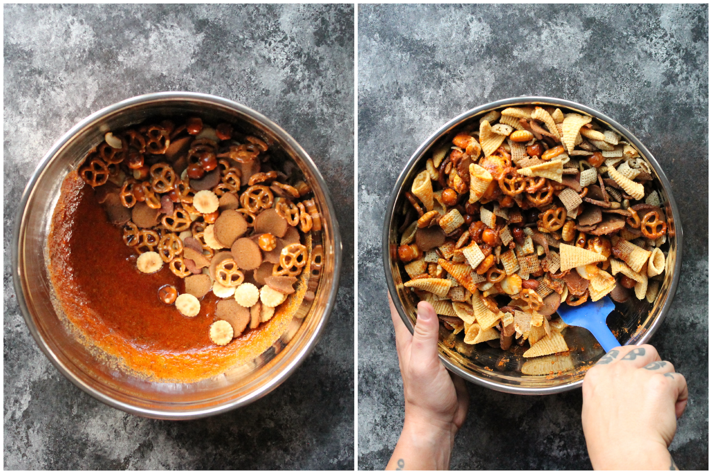 - Toss snack mix until well combined