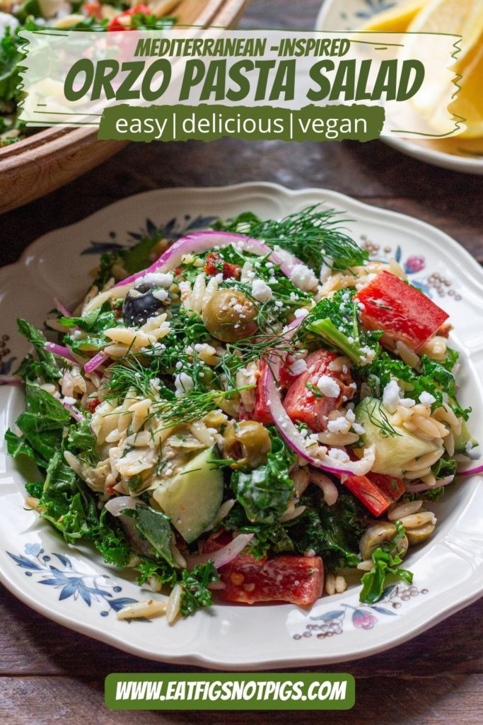 I hope you love these Mediterranean-Inspired Orzo Salad as much as I do! If you try this dish and enjoy it, I wanna know! Snap a photo, take a video, or make a story and post it to Instagram or TikTok, and tag me at @eat_figs_not_pigs and #EatFigsNotPigs. I love seeing your recreations of my recipes!