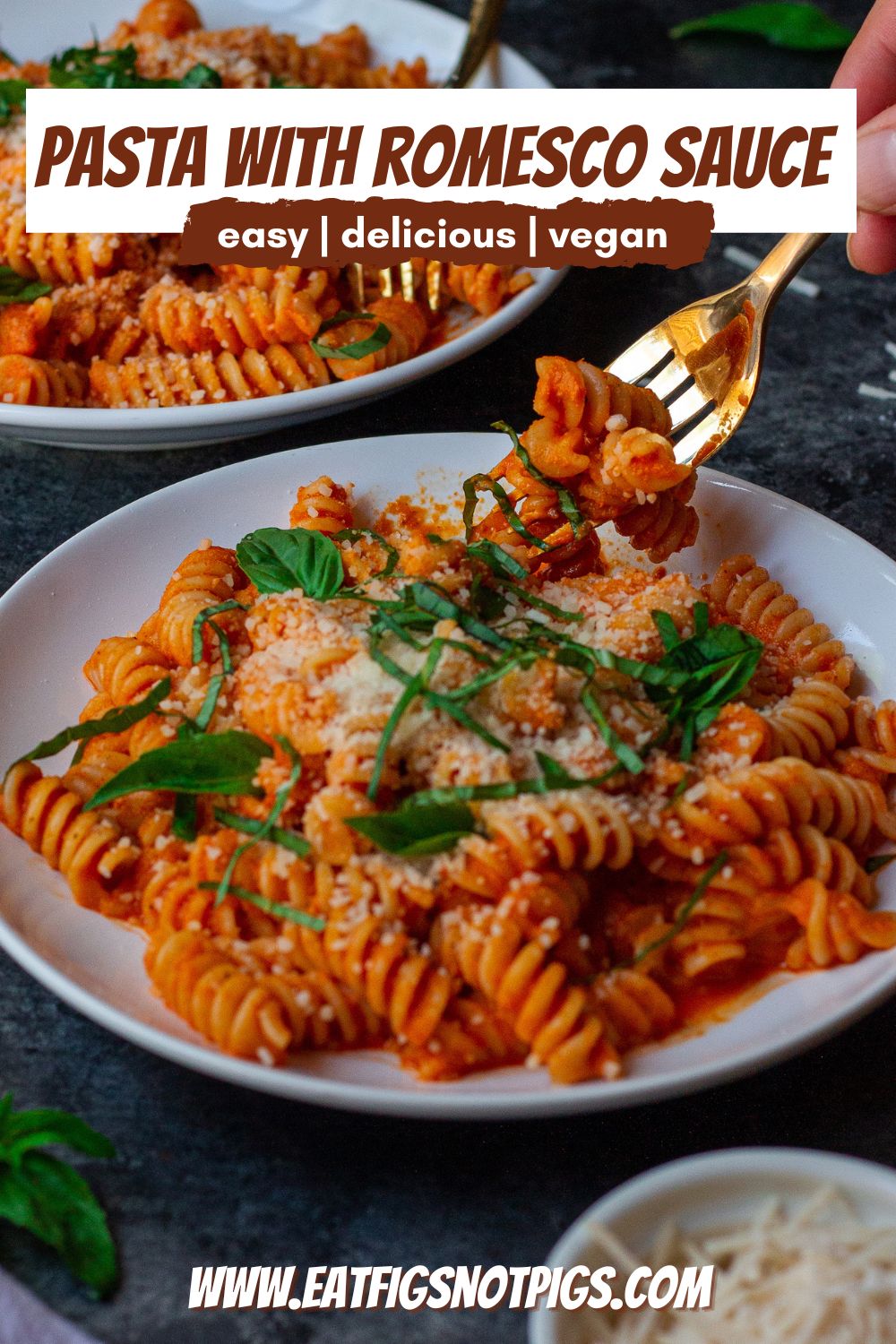 I hope you love my Pasta with Romesco Sauce as much as I do! If you try this dish and enjoy it, I wanna know! Snap a photo, take a video, or make a story and post it to Instagram or TikTok, and tag me at @eat_figs_not_pigs and #EatFigsNotPigs. I love seeing your recreations of my recipes!